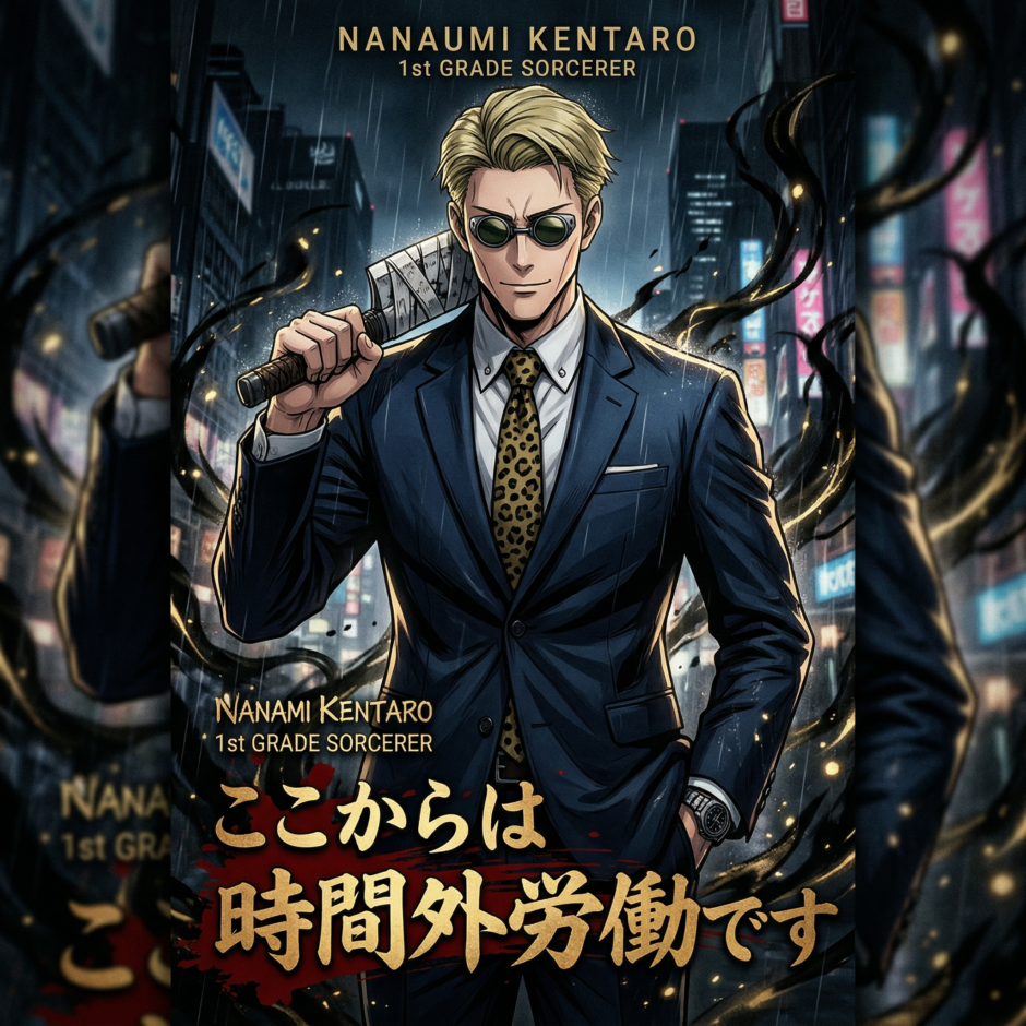 また七海は自身に「時間による縛り」を科しており、普段は呪力を80〜90%に制限しています。午後6時を過ぎると「時間外労働」として呪力の制限が解除され、110〜120%の呪力を発揮できるようになります。この設定が、あの名台詞と直結しています。